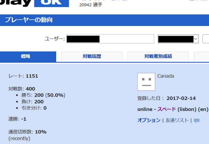 さっき某ゲームでウチに負けたひとのプロフィール。